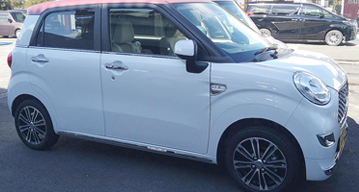 ダイハツキャンバスの新車です。 ストライプを黒い色に変えました。 |