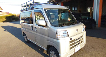 | ハイゼットカーゴの新車です。 マニュアル車とオートマ車です。1台にはルーフキャリアを付けました。 「これでキャンプや遠出をしてカーライフを満喫だぁ」と喜んで頂きました。 |