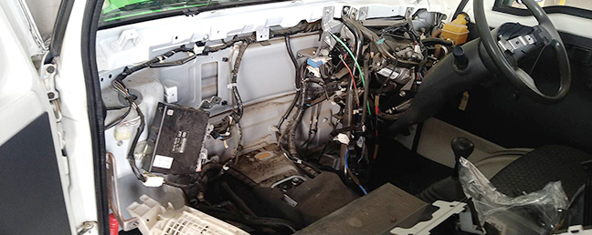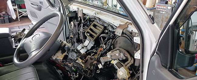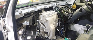 エアコンをかけると異音がするとの事で、エアコンのファンモーターの交換をしました。 ダッシュパネルを全部外して交換しました。 |