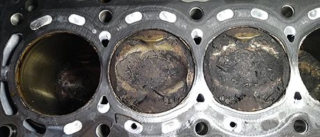 エンジン内部はオイル管理も良くて綺麗な状態ですが、 シリンダーヘッドを外してビックリです。 燃焼室に大量のカーボン(燃え残ったカス)が堆積してエンジンの回転を妨げていました! 珍しい故障事例でした。 |