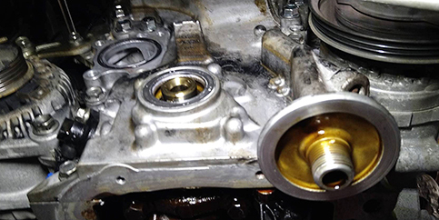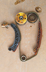 | 自動ブレーキのランプ点灯です。 原因はエンジンのタイミングチェーンが伸びているとの診断でした。 エンジンをばらしての交換となりましたが分解中の画像は撮り忘れました。 |