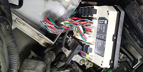 | エアコンが効かないとの事。コンプレッサーの配線を確認したら電源が来ていません。 サービスマニュアルとにらめっこしてバッテリー横にヒューズがあるとわかりました。 ヒューズ交換で終了でしたが、まさかこんな場所にヒューズがあるなんて.......。 |