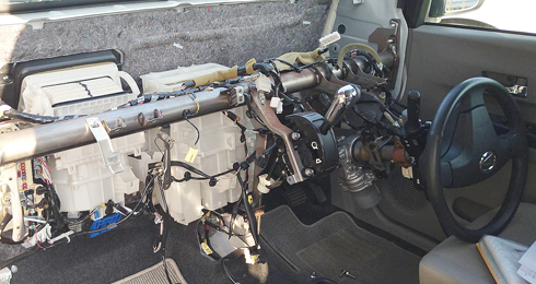 | 室内からエアコンガスが漏れてコンプレッサーが焼き付いてしまいました。 室内を全バラシして、エバポレーターとコンプレッサーの交換をしました。 またコンデンサーにレシーバーが入っているので、予防のためコンデンサーも交換しました。 |