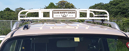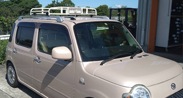 | お客様のご要望にてココアにルーフキャリアを付けました。 女の子には人気の車ですが、より一層可愛い車になりました! |