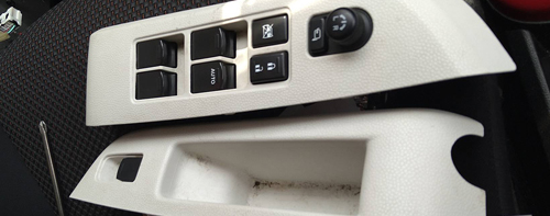 | スズキイグニスの左側のパワーウィンドが上下しないとの事。 内張りを外してモーターと助手席の導通確認をしましたが異常が見つかりません。 運転席のスイッチの確認後、マスタースイッチの不良と判断しました。 でも新品の部品が高かったのでリサイクル部品を使用しました。 |