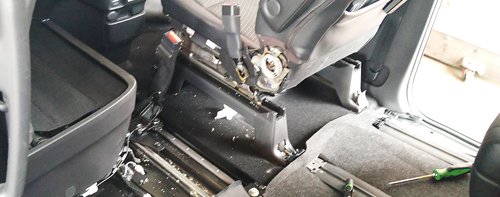 | お客様の子供さんがお弁当をこぼしたとの事でした。 暑くなると匂いも気になるので、シートを脱着しての清掃です。 清掃後に『強い味方のカーコンルームクリニック』を塗布して完了です。 |